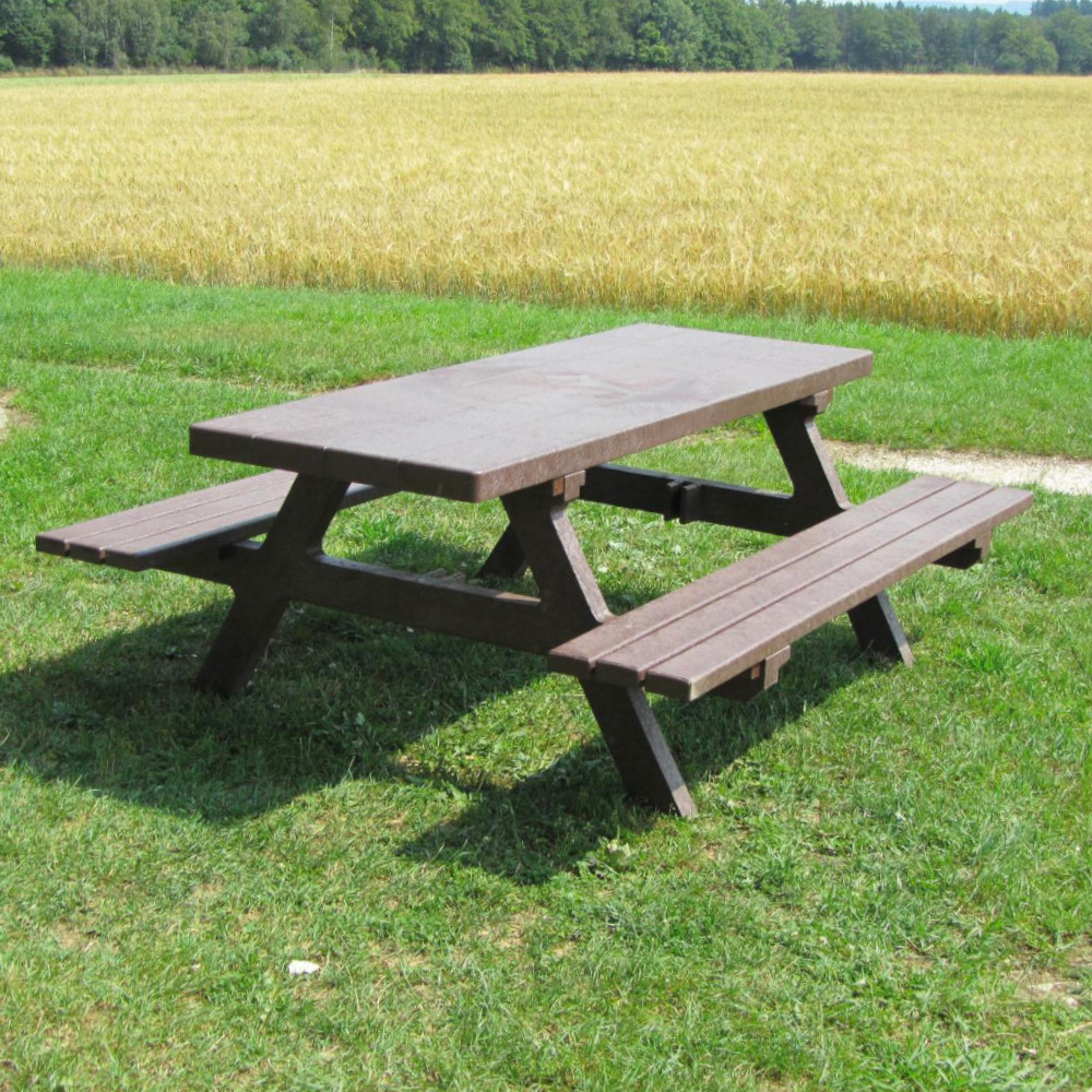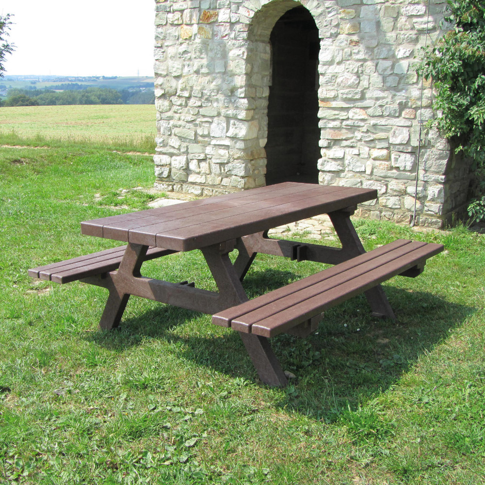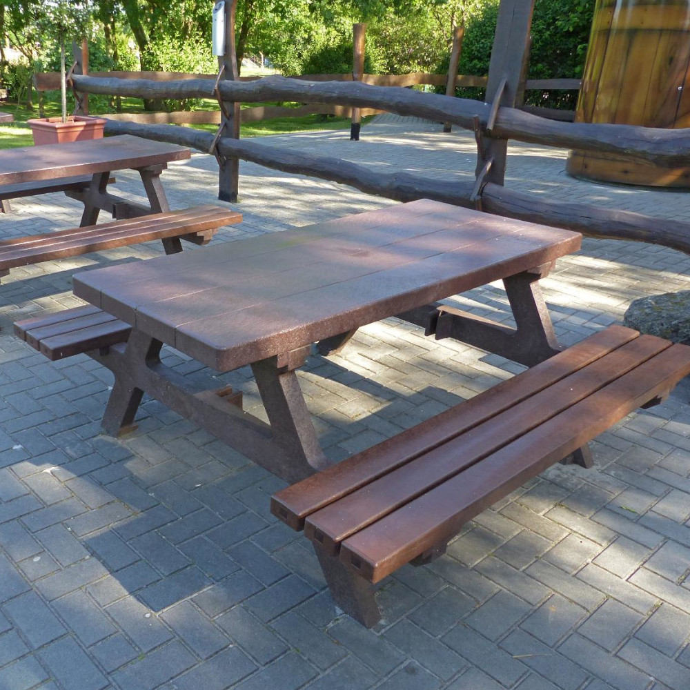 Die Picknick Sitzgruppe aus dem Recycling Kunststoff hanit® bietet den unschlagbaren Vorteil, dass ihr Wind und Wetter nichts anhaben können. Während Sitzmöbel aus Holz mit der Zeit verwittern und einen hohen Pflege- und Einlagerungsaufwand erfordern, ist die Picknick Sitzgruppe aus hanit resistent gegen Witterungseinflüsse und Verrottung. Das wasserabweisende Material verliert auch nach langer Nutzung nichts von seinem attraktiven Äußeren. So haben Sie und Ihre Gäste auch nach vielen Jahren noch Freude an der Sitzgruppe und brauchen diese nicht erneuern.