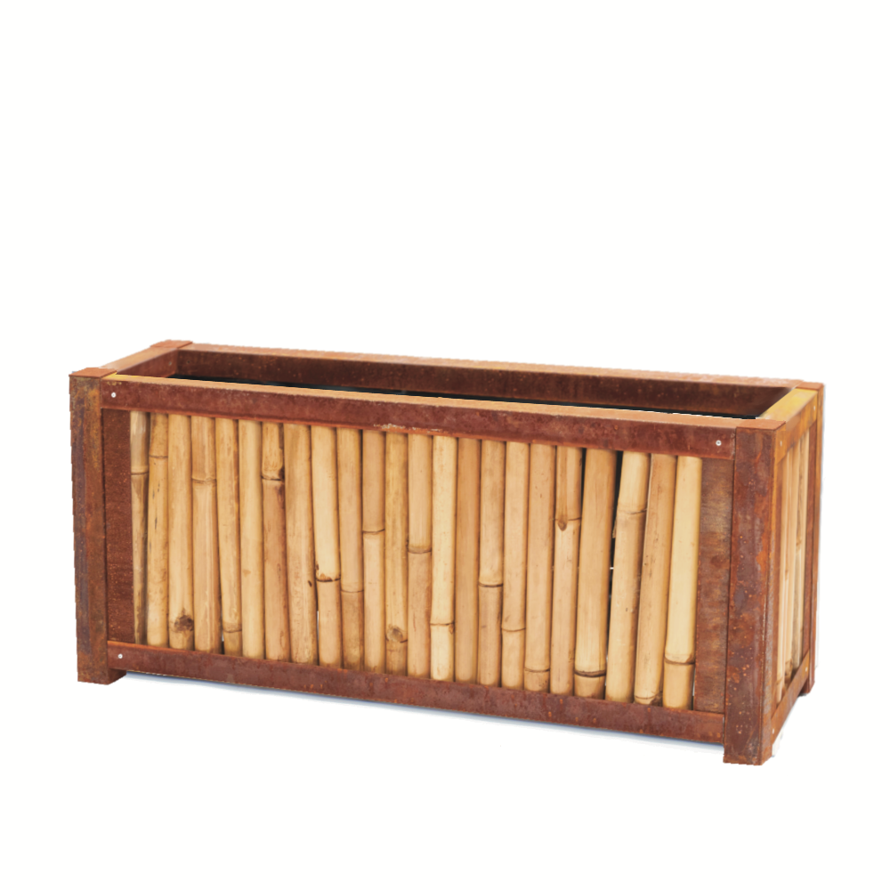 Hochwertiges Hochbeet aus Bambus und Cortenstahl, 120 x 44 x 57cm