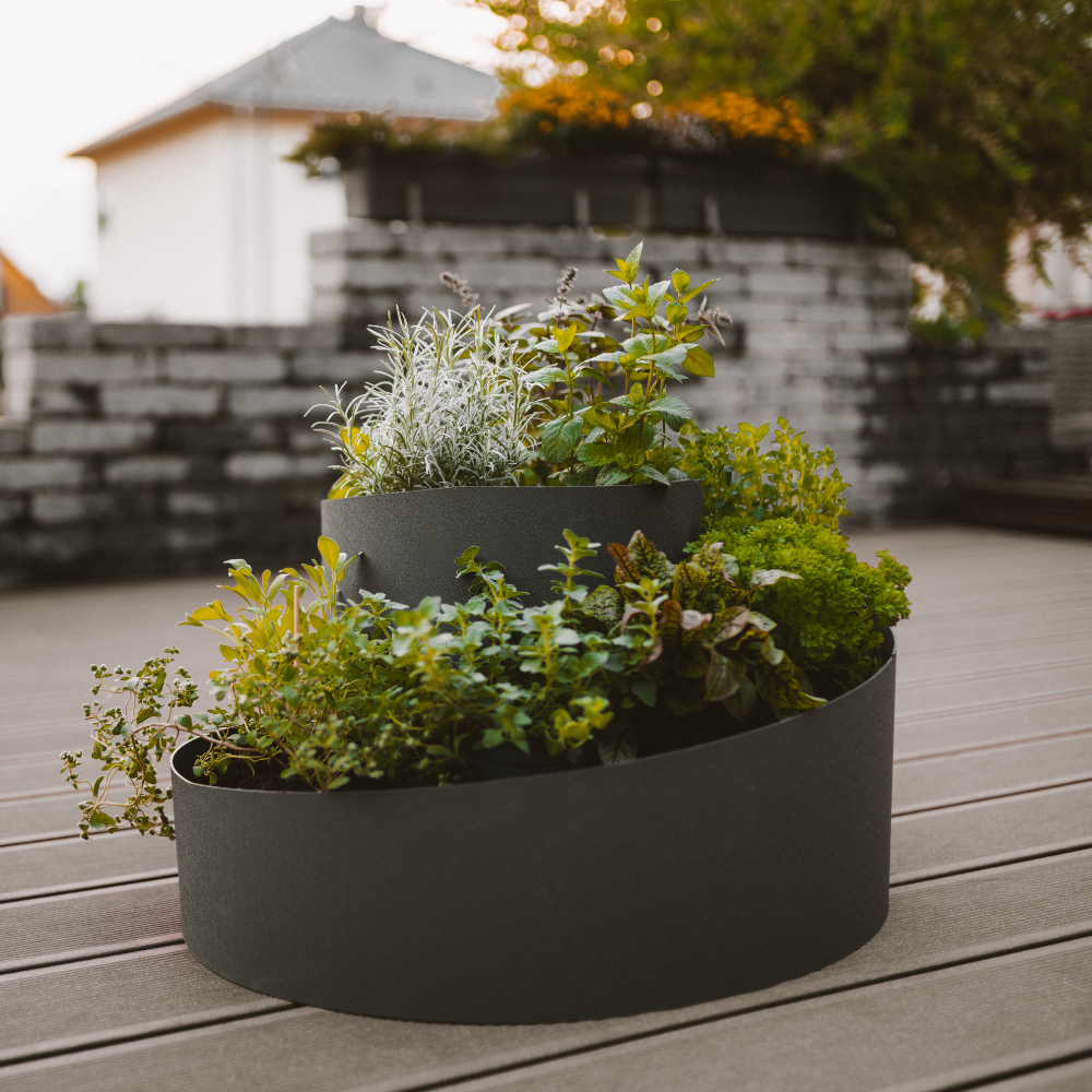 Die kleine Kräuterschnecke mit ihrem modernen Design ist ein echter Hingucker für Garten, Terrasse und Balkon. Sie besteht aus UV-stabilem PP Material und wird als Bausatz geliefert. Der Aufbau der Kräuterspirale ist kinderleicht Dank der vorgestanzten Löcher erfolgt die Installation in wenigen Schritten. Die zugehörigen Schrauben sind im Lieferumfang enthalten.