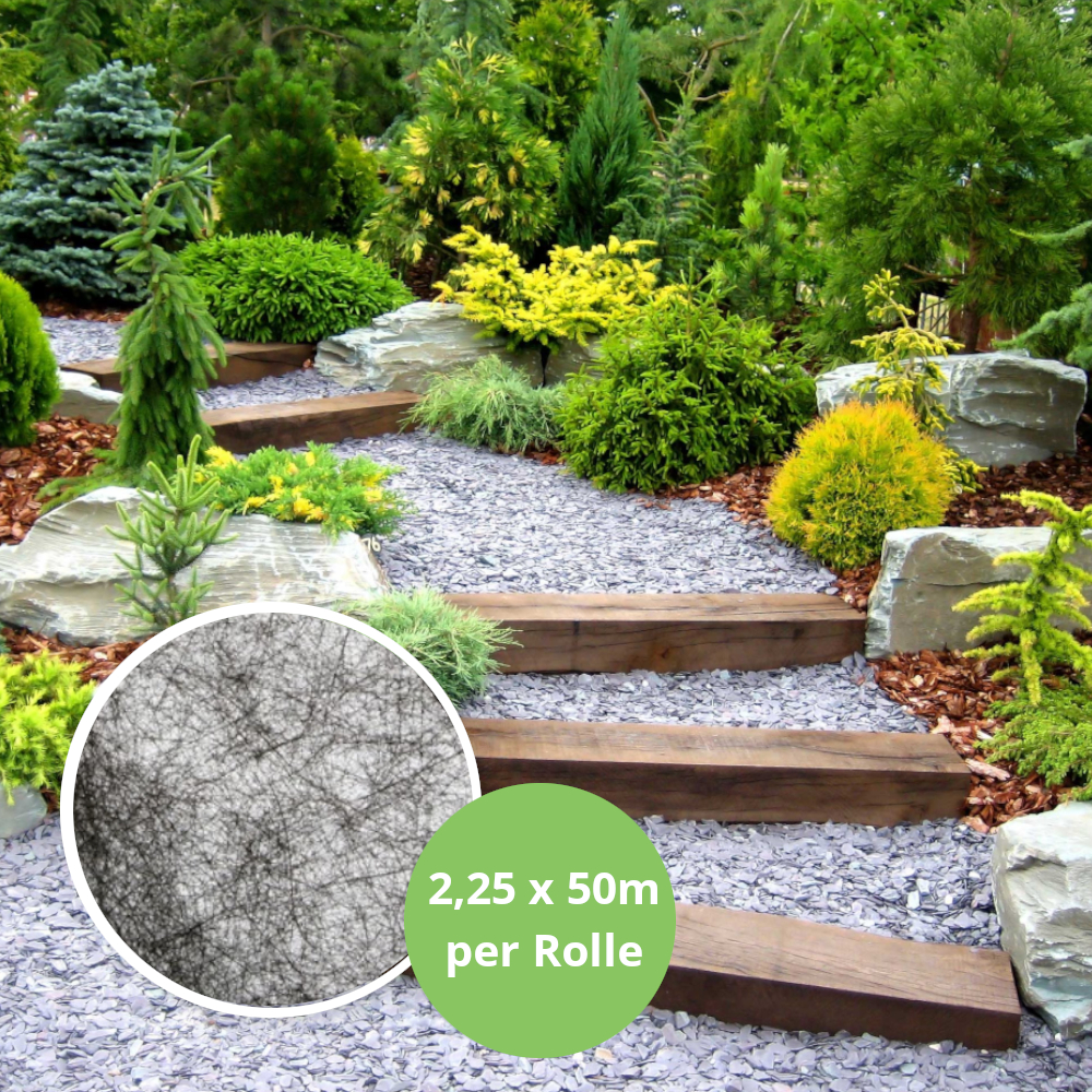 • die Austrocknung des Bodens wird durch das Gartenvlies reduziert